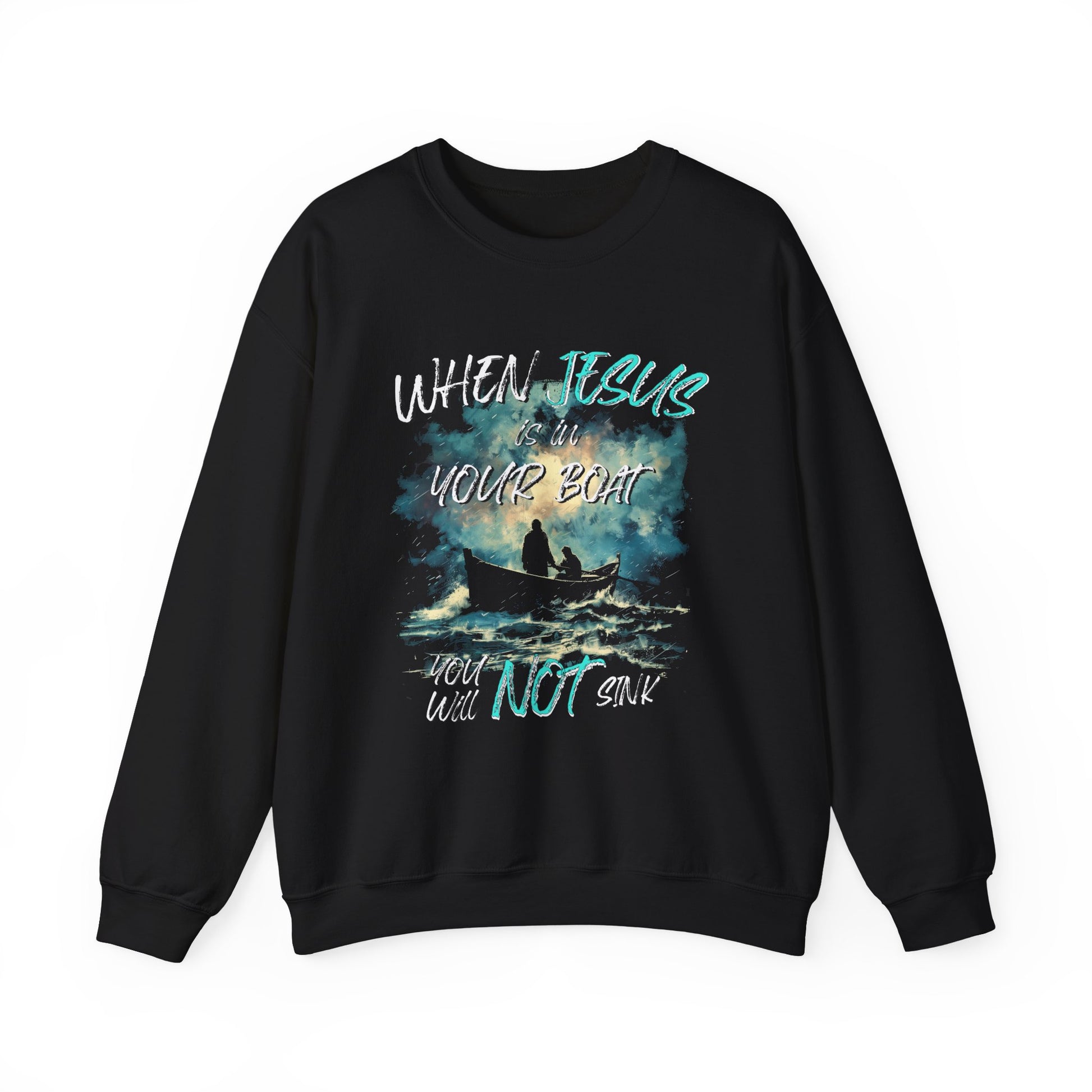 Find comfort in faith with our 'When Jesus Is in Your Boat' crewneck sweatshirt, featuring a serene design of two people in a boat and the reassuring words: 'When Jesus Is in My Boat, I Will Not Sink.' This sweatshirt embodies more than just warmth—it's a symbol of unwavering faith and trust in God's protection and guidance. Whether you're braving the elements or enjoying peaceful moments, let this cozy sweatshirt remind you and those around you of the steadfastness of your faith.