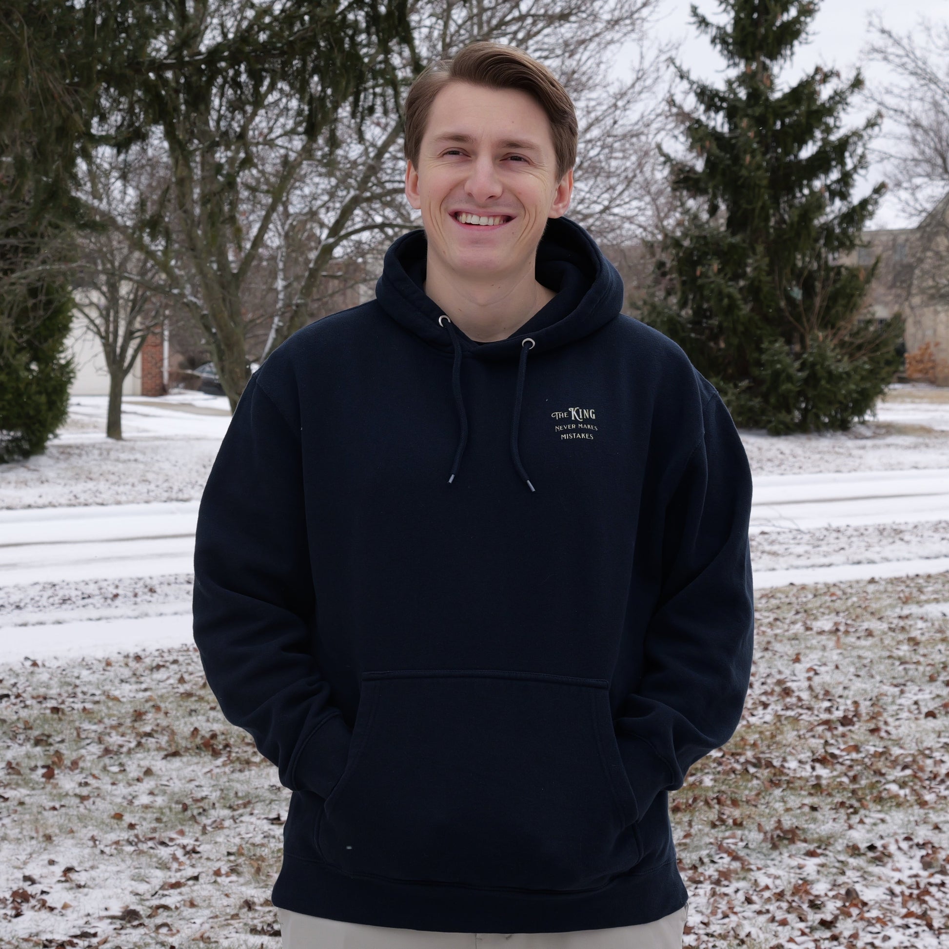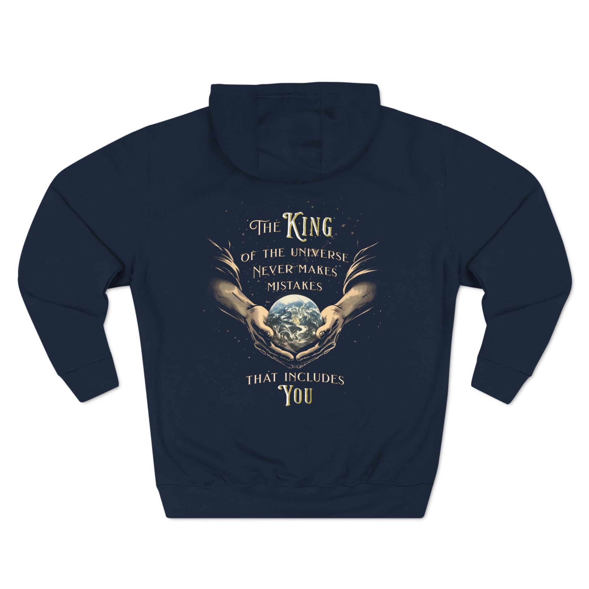 Stay warm while sharing a bold message of faith with our 'King of the Universe' hoodie. Featuring the empowering statement: 'The King of the universe never makes mistakes. And that includes you.' This hoodie is designed not only to remind you of God’s perfect love and purpose but also to inspire those around you.